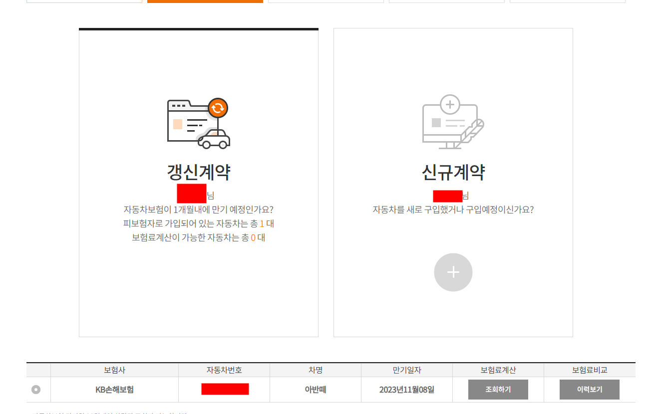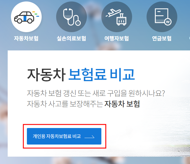 2️⃣ 개인용 자동차보험료 비교를 눌러줍니다.