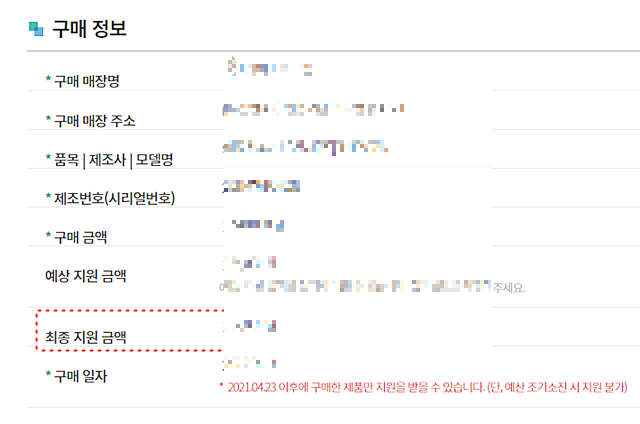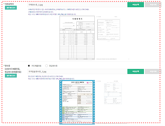 거래내역서에는 1등급 가전제품 구매비용 환급을 받는 신청자와 동일한 명의로 구매자가 적혀있어야 되고 영수증으로는 현금영수증 또는 카드 내역서를 첨부하면 됩니다