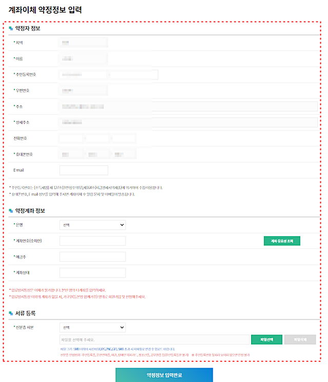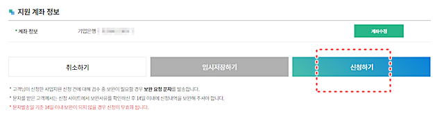 ​마지막으로 신청자의 계좌번호를 확인 후 신청하기를 누르시면 됩니다.